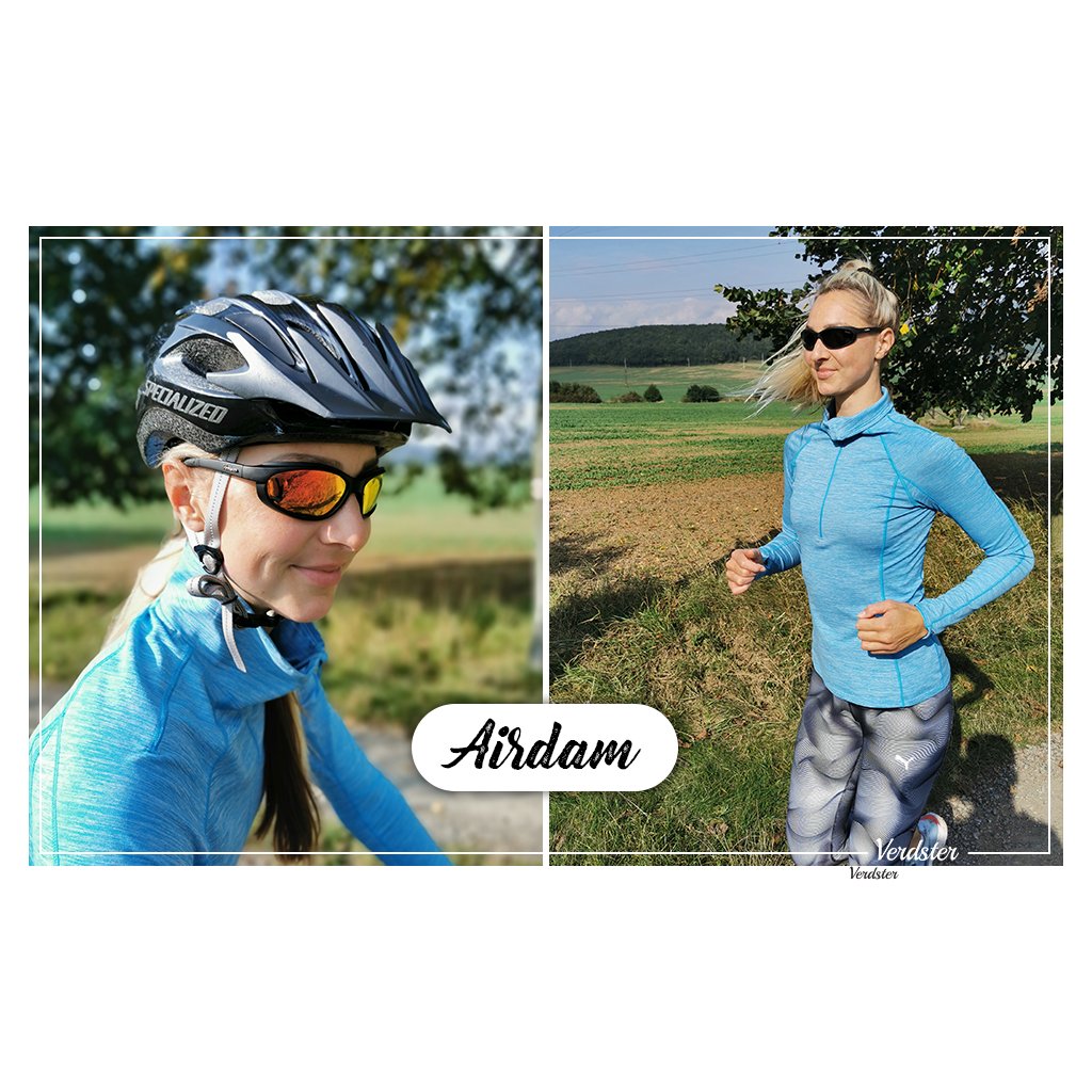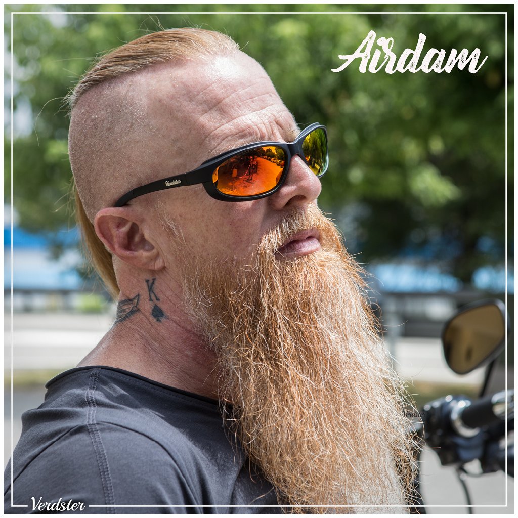 - ORANŽOVÉ AIRDAMY mají skla s revo technologií. Revo technologii původně vyvinula NASA pro použití na sklech skafandrů v kosmu. REVO kromě toho, že dobře vypadá (skla se lesknou a pod změnou úhlu mění barevné zabarvení) zabraňuje oslnění. Lehká konstrukce brýlí s měkkou pěnou okolo očí zajistí pohodlné nošení. Tím pádem brýle skvěle drží na očích. Tento koncept umožňuje skvělý výhled v celém zorném poli a precizní čelní ochranu od slunce a větru. Náš Airdam je jedničkou mezi motorkáři a cyklisty. To ale neznamená že si ho plně neužijí i jiní sportovci, jedná se o kvalitní, sportovní brýle.