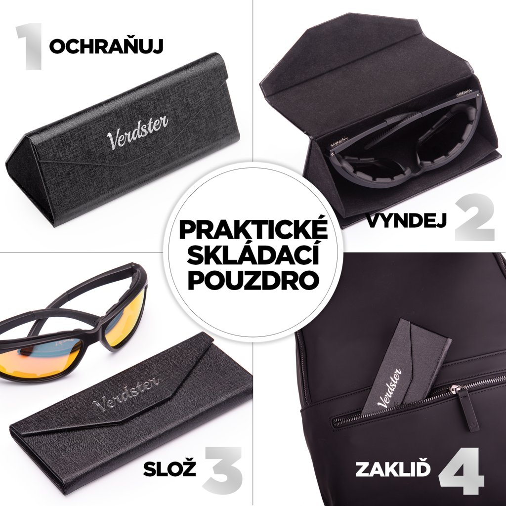- ️UV OCHRANA Díky ochraně UV400 jsou vaše oči chráněny od škodlivého UVA&UVB záření, což z brýlí dělá více než jen módní doplněk. Skla jsou polarizovaná.